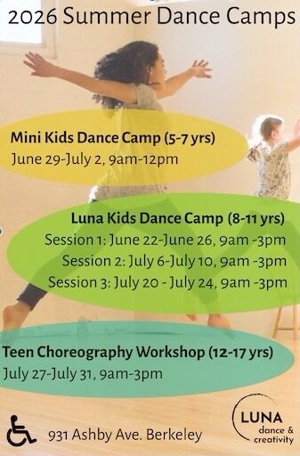 Luna Dance & Creativity invites middle and high school students to its Teen Choreography Workshop (Ages 12–17), July 27–31, 9:00 AM–3:00 PM. This week-long program is designed for both new and experienced dancers to explore choreography, build creative expression, and collaborate with peers in a supportive environment. For more info, visit lunadancecreativity.org or call 510-883-1118.